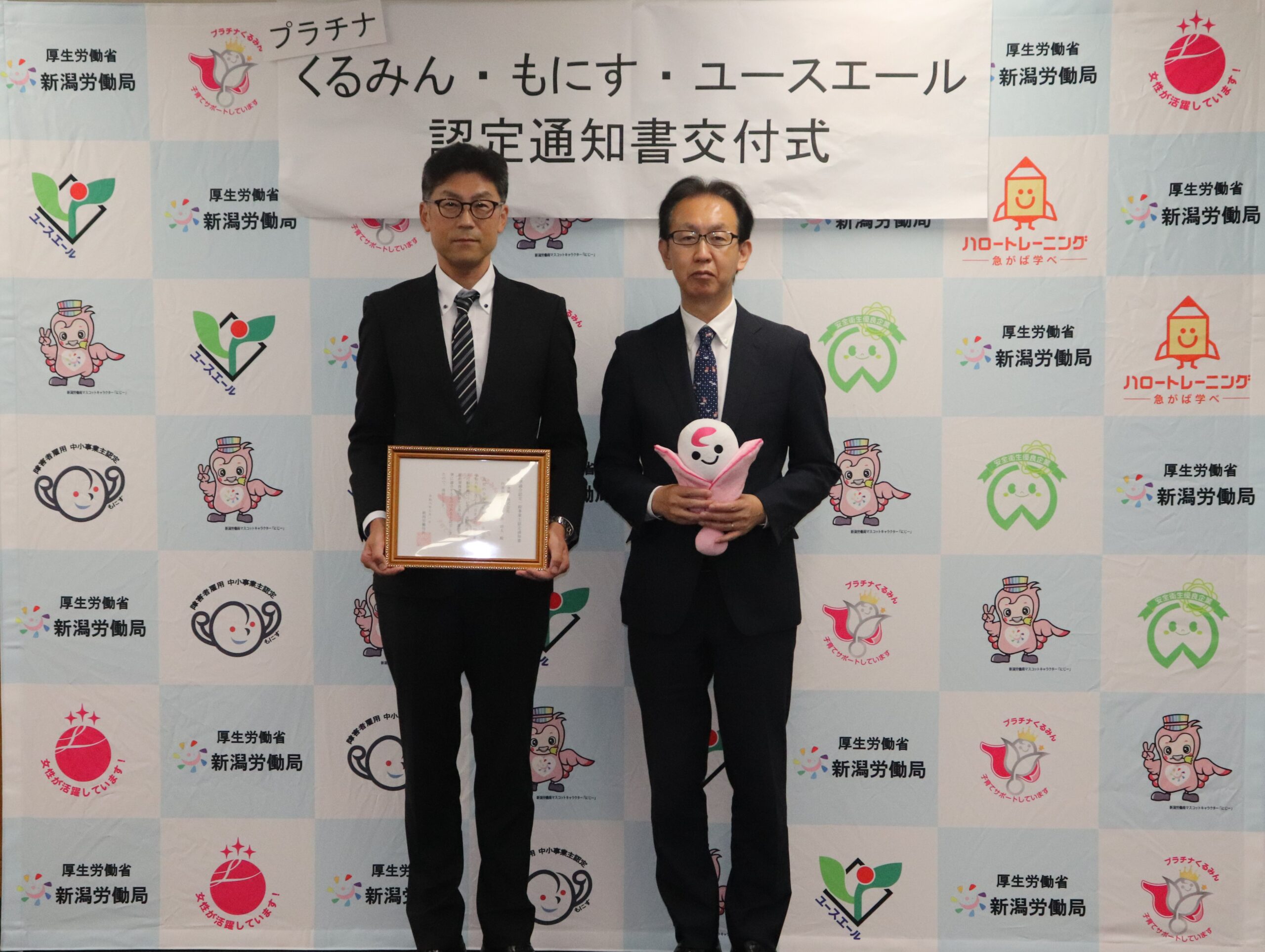 新潟県内では9番目となる「プラチナくるみん」認定を取得しました。